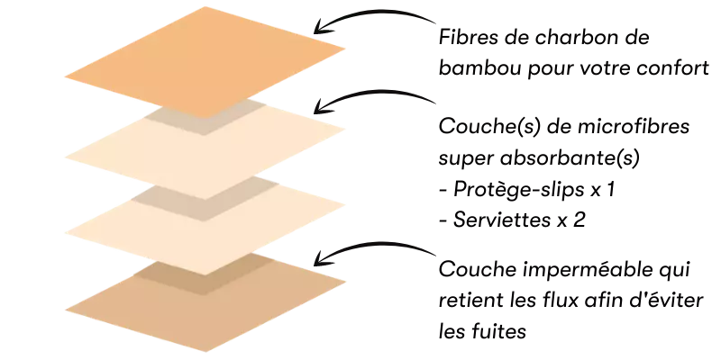 Pour ce qui est de l'étanchéité, nous utilisons du PUL (20%). Le “PUL” est un tissu polyester contrecollé à un film polyuréthane, 100% imperméable, doux ,souple et respirant, utilisé pour la confection de serviettes lavables, et résistant aux lavages répétés.