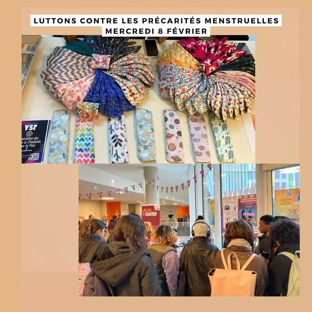 Les jeudi 6, vendredi 7 et samedi 8 avril 2023, YSP (l’Association des jeunes et étudiants pour la paix) et l’association Hystérique* ont effectué une deuxième distribution de protections hygiéniques réutilisables gratuites avec l’aide de 12 bénévoles à l’Espace Barrault puis à l’Université Sorbonne Nouvelle.
